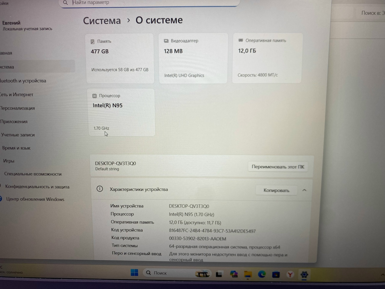 12Gb оперативной. SSD 512Gb / Intel N95/ intel UHD Graphics